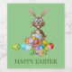 Easter bunny with baskets of coloured eggs. Personalised card to present as a gift to your loved ones.