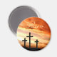 Sunrise crosses on Calgary with the text Risen Easter photo magnet