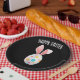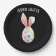 "HAPPY EASTER" PAPER PLATES WITH BUNNY EARS & SPECKLED EGG.