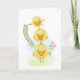 This is a cute and fun Easter card design featuring three yellow chicks standing on top of each other. The chick on the ground is happy and smiling and holding some pink flowers, the slightly smaller chick standing on his head is happy and composed. The smallest chick, however, who's at the top of the pyramid, has lost her balance and has just dropped the HAPPY EASTER flag which she was supposed to be holding aloft!