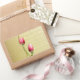 Noble gold parchment with "Happy Easter" Typography and 2 pink tulips.