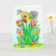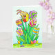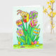 In this cute Easter illustration, a tiny easter bunny sits in a tulip, painting it with easter egg patterns. Around it are other tulips he has already painted in colourful stripes, dots and waves. Send this cute card to friends and family to wish them a Happy Easter.
