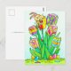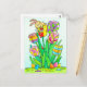 In this cute Easter illustration, a tiny easter bunny sits in a tulip, painting it with easter egg patterns. Around it are other tulips he has already painted in colorful stripes, dots and waves. Send this cute card to friends and family to wish them a Happy Easter.