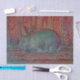 Cute white Easter bunny rabbit rustic red teal wood grain printed art craft decoupage tissue paper. Image copyright Marg Seregelyi Photography.