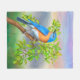 Original fine art realism design of a male Eastern bluebird by avian artist Carolyn McFann printed on a quality, soft fleece blanket for wild bird and birding fans.