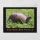 Box Turtles are mid-sized, terrestrial turtles – 4.5-6 in (11.5-15.2 cm) – with a high, rounded shell that is dark with many yellow or orange splotches.   The plastron (bottom of the shell) is hinged, allowing the box turtle to completely close it shell. Box turtles are a protected species in South Carolina.