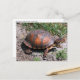 Box Turtles are mid-sized, terrestrial turtles – 4.5-6 in (11.5-15.2 cm) – with a high, rounded shell that is dark with many yellow or orange splotches. The plastron (bottom of the shell) is hinged, allowing the box turtle to completely close it shell. Box turtles are a protected species in South Carolina.