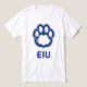 This design features two distinct elements representing Eastern Illinois University (EIU). At the top, a stylised panther paw print is prominently displayed. The paw print is rendered in blue with a grey outline, creating a bold and recognisable symbol of the EIU Panthers. Below the paw print, the acronym "EIU" is presented in a strong, sans-serif typeface, reinforcing the university's identity. The entire design is set against a clean, white background for maximum contrast. This logo is used across various platforms to represent Eastern Illinois University and its athletic teams, the Panthers. Show your EIU spirit with this unique and powerful logo design!