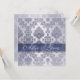Colourful swirls of blue, silver, cream and white damask pattern with couple's name on the front and details on the back. Can easily be edited for any party invitation