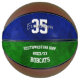 This keepsake basketball is regulation size and features her team's blue and green colours on two of the basketball's panels, upon which her name and jersey number plus school name, mascot name and sports year / season can be easily customised - the basketball's blue and green panels have a digitally-created textured appearance - by katz_d_zynes