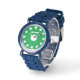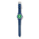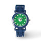 Easy to tell time kid's watch with custom name. Personalised wrist watches printed with name or monogram letters. Cute Birthday gift idea for boys and girls. Sporty design with numbered bezel. Chirldren's presents with simple dial design for easy learning. Perfect for son, grandson, nephew, grandchild, friend etc. Green or custom colour background. Black leather strap.