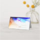 This colourful place card has a faint line to guide your handwritten guest names. The design is a unique alcohol ink wash of sapphire blue and citrus orange with an accent of metallic gold. Inside is a place for your short thank you message to your guests. Easy Your Message Inside Wedding Place Card.