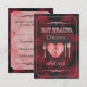 A zombie RSVP wedding invitation that has the words "Eat brains, drink and RSVP" which is a play on words for "Eat, Drink and be Married". This is a Gothic touch and has a heart brain with a fork, knife and spoon. Very fun and trendy. Great for Halloween weddings as well.