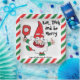 Cute Christmas pickleball paper plate with Santa playing pickleball on white background. Eat, dink and be merry