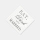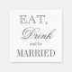 Eat drink and be married paper wedding napkins. Elegant script typography design for classy wedding party. Stylish handwritten calligraphy combined with chic formal fonts. Customisable grey and white colours. Vintage slogan for classic dinner table.