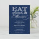 This classy rehearsal dinner invitation features the phrase "Eat, drink, and be married" in bold typography.