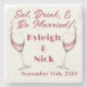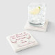 This is a stone coaster with a "Eat, Drink, & Be Married" theme with wine glass artwork. It includes text fields for a saying, names, and dates. Message MineByDesign and we can help customise any design you envision.