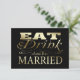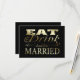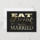 Wedding RSVP replies, add your own text to these fun eat drink and be married wedding reply invites .. black and gold (not real gold colour will be printed in ink) designer wedding invites From Ricaso.. ( NOTE: YOU CAN BUY WHITE PENS WHICH WILL WORK ON THIS INVITE ) big discounts when purchased in bulk .. check out our bulk savings