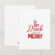 A simple in red typography of eat, drink and be merry holiday greeting cards for your loved ones.