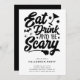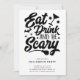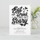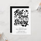 This stylish invitation features a black and white typography design with the words "Eat Drink and be Scary. It's the perfect way to add a touch of Halloween fun and sophistication to your party and let your guests know they're in for a frightfully good time.
