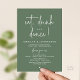 Announce your happily ever after in style with our modern minimalist casual script design wedding reception elopement dinner celebration invitation card in sage green theme. Our Happily Ever After "eat, drink and dance!" Invitation card is ideal for couples who have decided to elope and want to host a party to celebrate their union. With its sophisticated yet playful design, this invitation is sure to set the tone for an unforgettable event. The invitation card features a minimalist design with a black and white scheme, adding a touch of timeless elegance to your celebration.