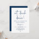 Announce your happily ever after in style with our modern minimalist casual script design wedding reception elopement dinner celebration invitation card in navy blue theme. Our Happily Ever After "eat, drink and dance!" Invitation card is ideal for couples who have decided to elope and want to host a party to celebrate their union. With its sophisticated yet playful design, this invitation is sure to set the tone for an unforgettable event. The invitation card features a minimalist design with a black and white scheme, adding a touch of timeless elegance to your celebration.