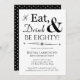 Eat Drink Be Eighty Black White 80th Birthday Invitation