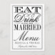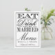 Eat, Drink & Be Married Modern Black/White Wedding Menu