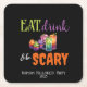 Eat, Drink & Be Scary Halloween Party Neon Retro Square Paper Coaster