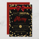 Eat Drink Gold Black Glitter Holiday Xmas Bow Invitation