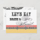 A Modern take on Vintage... Looking for a great bridal shower invitation? Modern Circus Poster Style Farmhouse Rustic yet Elegant Invite with fun fonts announce the message, "Let's eat, drink and get married!" on a delightful whimsical Bridal Shower invitation postcard. In a clean, crisp, mustard gold, peach, grey, black and white colour palette it's the best of vintage with a modern twist. Add your Bridal Shower invitation easily to the reverse side.