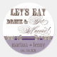 Elegant and fun fonts announce the message, "Let's eat, drink and get married!" on a delightful whimsical Wedding Invitation Ensemble. In a clean, crisp, lavender, plum purple, chocolate brown and white colour palette it's the best of vintage with a modern twist. The sticker or seal has the text and your names with your wedding date. There is a complete suite of products available with this design and we can do it in any colour combination(s) you desire.