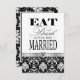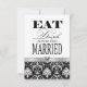 Eat Love and be Married - Elegant Black and white damask wedding RSVP Card. With diamond heart accent.