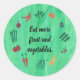 These stickers feature my painting of various fruit and vegetables in a clock face arrangement. The text in the centre says, Eat more fruit and vegetables. The fruit and vegetables include oranges, blueberries, cucumbers, cherries, bananas, green beans, carrots, tomatoes, asparagus, radishes, sweet potatoes, and spinach. The background is blended green. Thank you for shopping CherylsArt on Zazzle.