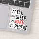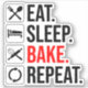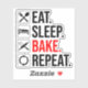 Eat. Sleep. Bake. Repeat. This funny quote baking accessory is a great gift for a man, woman, teens & kids who love to bake in the kitchen. Also perfect for a baker or a bakery worker. If you're a home baker, love the culinary arts, and love to prepare delicious bread, cookies, muffins, cakes or cupcakes in the oven, then this humourous design is for you.