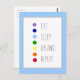 Charming minimalist wellness postcard design with a simple 7-Chakra graphic and customisable "Eat. Sleep. Balance. Repeat." message and sky blue frame border . Great for yoga instructors, massage therapists and others who practice holistic wellness and meditation.