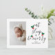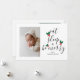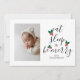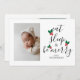 Cute Christmas Baby Photo template card featuring fun text in modern elegant calligraphy script that says "eat, sleep, and be merry". There is a watercolor illustration of a red and green holly in between the text which looks like a Christmas tree! Add your sleepy family/ baby picture ! You can add one more picture on the back together with your custom message. Perfect for Christmas but also baby showers and birth announcements around the Holiday Season!