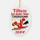 Festive red Eat, Sleep, Train Cheerleading personalised and dated Christmas ornament. Thrill your terrific Cheerleader with this awesome Christmas ornament year after year. This fabulous Cheerleading design is the perfect gift for Birthdays, Holidays, or any occasion. Your top notch Cheerleader will do back flips and twists for this unique and original Cheerleading Christmas ornament.