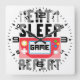 Eat sleep game repeat square wall clock