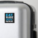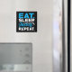 Eat Sleep Hockey Repeat design with blue and white text on a black background, a great design on pillows, mugs, stickers, and other items for hockey players!