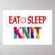 Knitting lovers can show how much a big part of their day knitting is with this colourful design with a clock and the words - Eat Sleep Knit. Makes a great gift for knitters.