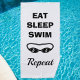 Eat sleep swim repeat funny goggles beach towel. Unique Holiday gift ideas for men, women and kids. Customisable background colour. Extra large size for beach or pool. Create your own cool towels for best friends, retiree, retired person, pensioner, family, husband, wife, co worker, colleague, fun boss, employee, mum, dad, sister, brother, aunt, uncle, grandpa, grandma, manager, teacher, nurse, coach, teammate, office worker, swimmer, traveller, son , daughter, teenager, vacationer, wedding couple, newly weds, newlyweds, bride and groom, mr and mrs, honeymooners etc. Humourous quote.