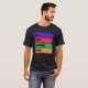I give wanted to give this a 4 instead of a 5 because these Basic DARK T0shirts run unexpectedly SLIM or Narrow. Which is great if you do not have a potbelly, but I have a paunch. It isn't the shirt's fault that I've got a beer belly. The design and shirt itself is a quality cotton shirt. The color is more of a deep purple, but still a very pretty color. The Basic DARK T-shirts run a bit SLIMMER than the Basic Ts. The neck is a fraction narrower (or seems to be narrower) also. I'm a paunchy middle-aged woman and my neck is 12 inches (31cm) thick and the neckline fell about the same as in the photo of the man, and I had the desire to tug it a bit. So if you're a thick necked man or like loose shirts, be aware these are slimmer shirts. Once I get rid of my lockdown paunch it'll look great. The shirt washed well in cold water with no apparent bleeding. We don't have a dryer, so it hung dry. Did not shrink. Love the colors and the design. The design looks smaller on my shirt than it does on the model on-line. But still, it looks good on the shirt. The printing looks as it does on the model, just the size seems fractionally smaller. Washed garment in cold water, hung dry and design appeared unaffected.