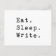 Simple typewritten eat, sleep, and write statement. You can change the background colour.