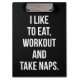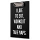 Eat, Workout and Take Naps - Funny Novelty Workout Clipboard