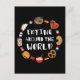 Colourful circle of iconic foods with country flags: pizza, sushi, tacos, burgers, croissants, pretzels and noodles. For food lovers and travelers who enjoy global flavours.