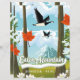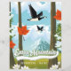 Eaton Mountain Skowhegan, Maine -Cartoon Landscape with Geese flying over a mountain and trees.