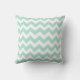 Eau de nil (pale green blue) pairs beautifully with fresh white, in a zig zag pattern of chevron stripes, on a cool accent pillow.
