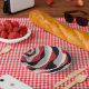 Ebb and Flow 4 - Red, Grey, Black and Bone White Paper Plate
