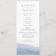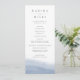 This coastal chic wedding program matches our Ebb Tide collection, featuring a sheer watercolor wash of dusty periwinkle blue along the bottom, with your custom text in soft grey lettering. Customise the front with your ceremony program, and add your wedding party to the back.